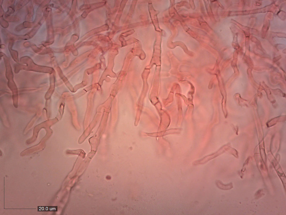 Výtrusy 6,6–7,9 x 5,5–6,2 (průměr 7,2 x 5,9) µm, Qav = 1,22.