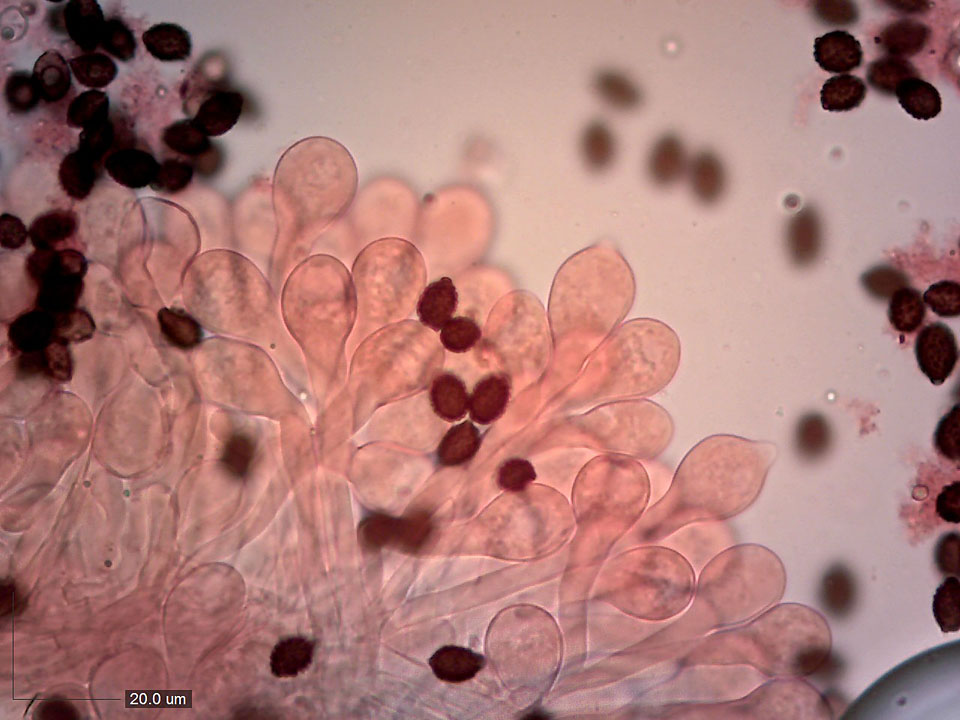 Výtrusy 8,1–10,7 x 5,4–6,9 (průměr 9,7 x 6,3) µm, Qav = 1,55. Mikroskopováno ve vodě.