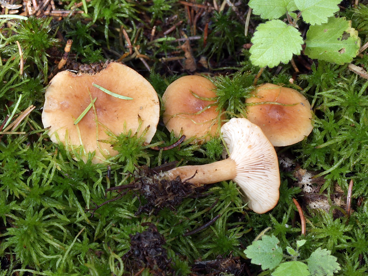 Smrkový les s občasným výskytem borovice a břízy. Prameniště, lokálně vlhko v porostech rašeliníku, na plodnicích hub se však často a zřetelně projevovalo všeobecně panující vedro a sucho. Celkově pět plodnic ve skupině.