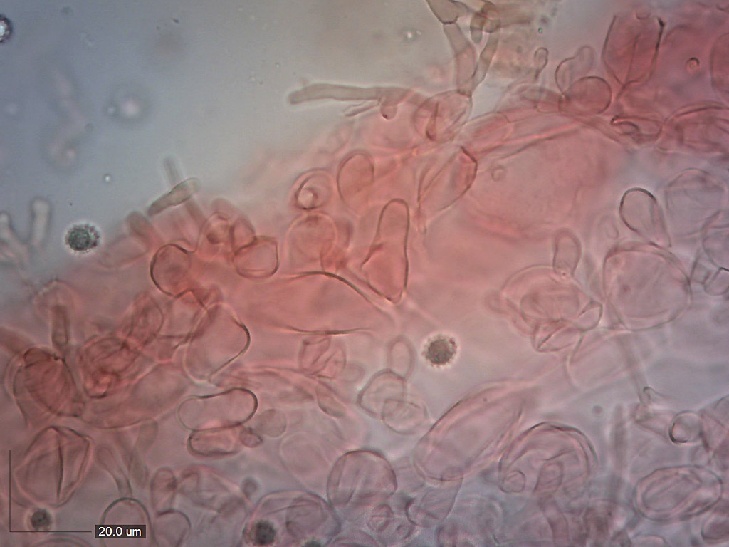 Zralé výtrusy 6,6–8,1 x 5,2–6,3 (průměr 7,4 x 5,8) µm (Qav = 1,26). Mikroskopie výtrusů Melzerovo činidlo.