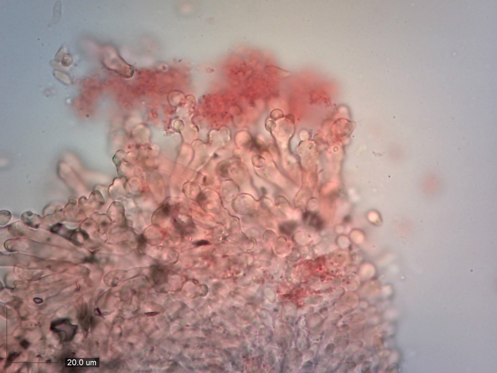 Zralé výtrusy 7,8–10,5 x 3,5–4,2 (průměr 9,3 x 3,8) µm (Qav = 2,4). Mikroskopie výtrusů H2O.