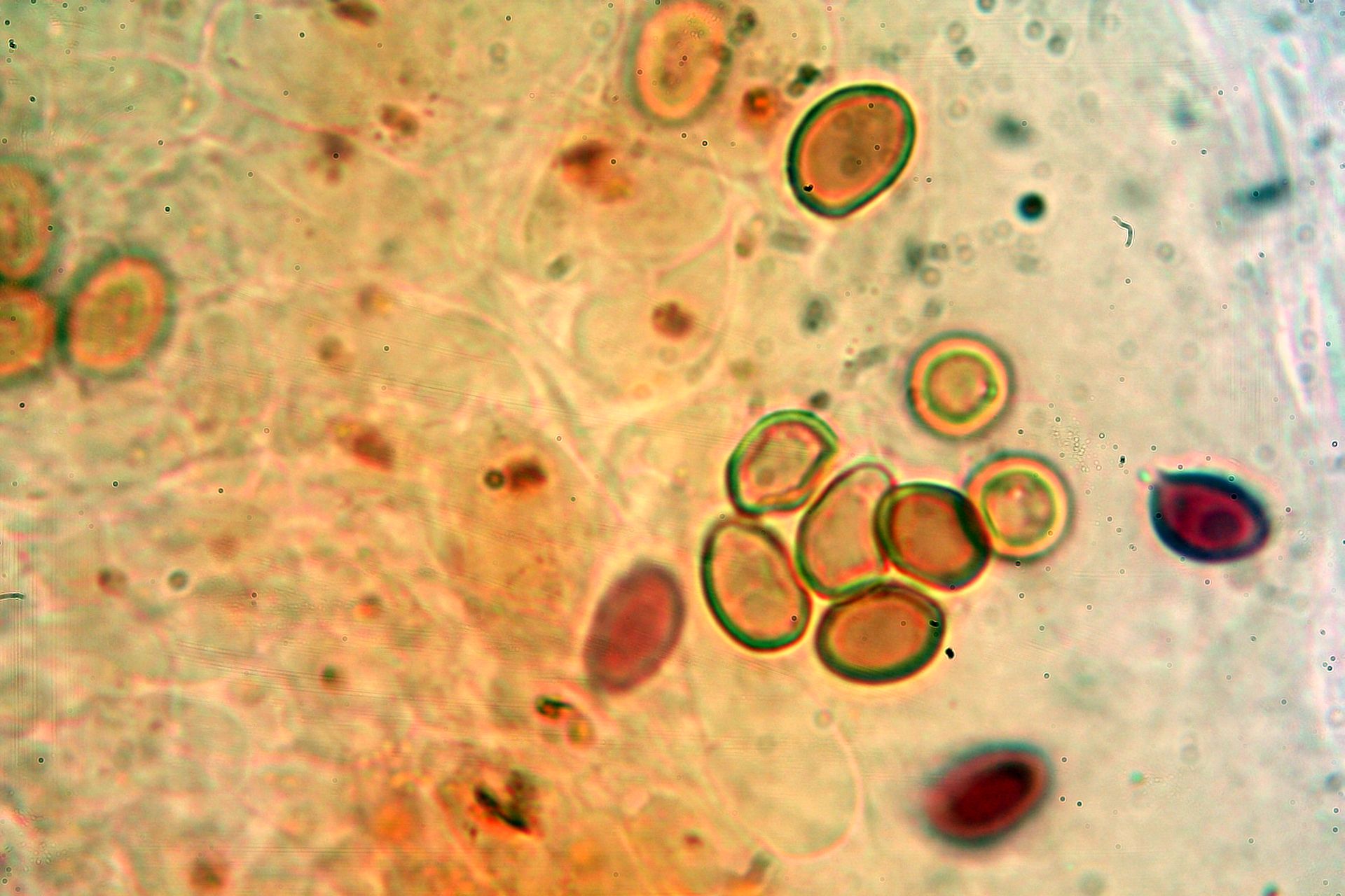 Výtrusy světle hnědé, tlustostěnné, široce elipsoidní až vejčité s nepatrným klíčním pórem 7 - 8 x 5 - 5,5 (6)µm.