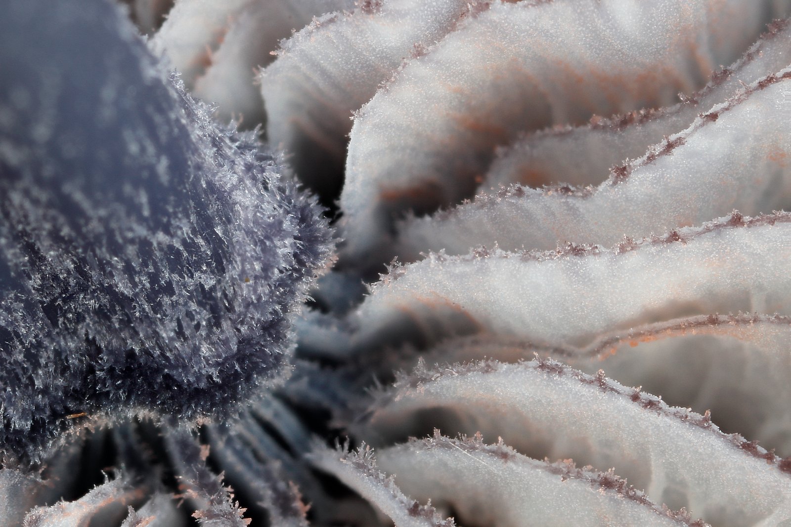 Klobouk 2-4 cm, téměř černý, drobně vrostle šupinatý. Lupeny v mládí bělavé, s pilovitým tmavě a spíše hnědě než modře zbarveným ostřím, u třeně vykrojené. Třeň téměř černý, u lupenů plstnatý, na bázi také bělavě plstnatý. Vůně nevýrazná.