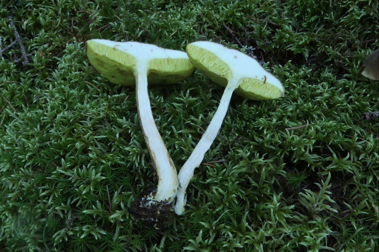 Dvojník hřibu plstnatého, který má tmavší klobouk, bílou dužninu a roste pod jehličnany.