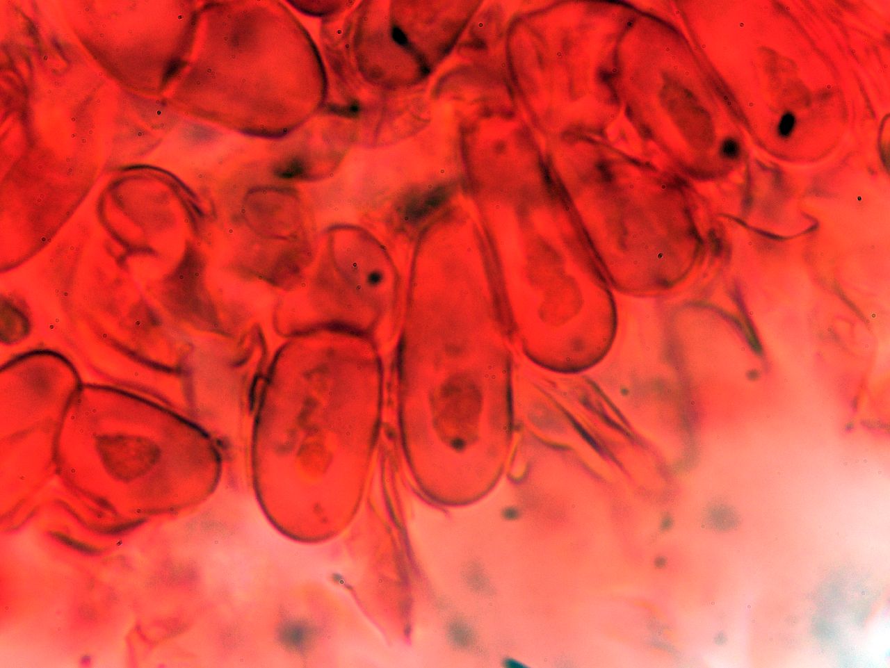 VÝTRUSY hladké, elipsoidní 6,5 - 9 x 3 - 4 µm. STĚNY komůrek jsou tvořeny z kulovitých až elipsoidních buněk. Z nich vyrůstají štíhlé, dlouhé BAZÍDIE 36 - 42 x 4 µm.