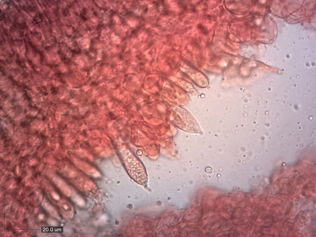 Zralé výtrusy 6,4–7,7 x 5,3–6,4 (průměr 7,2 x 5,9) µm (Qav = 1,2). Mikroskopie pro měření výtrusů Melzerovo činidlo.