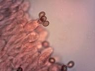 Zralé výtrusy 6,0–7,5 x 5,1–6,1 (průměr 6,8 x 5,6) µm (Qav = 1,2). Mikroskopie pro měření výtrusů H2O.