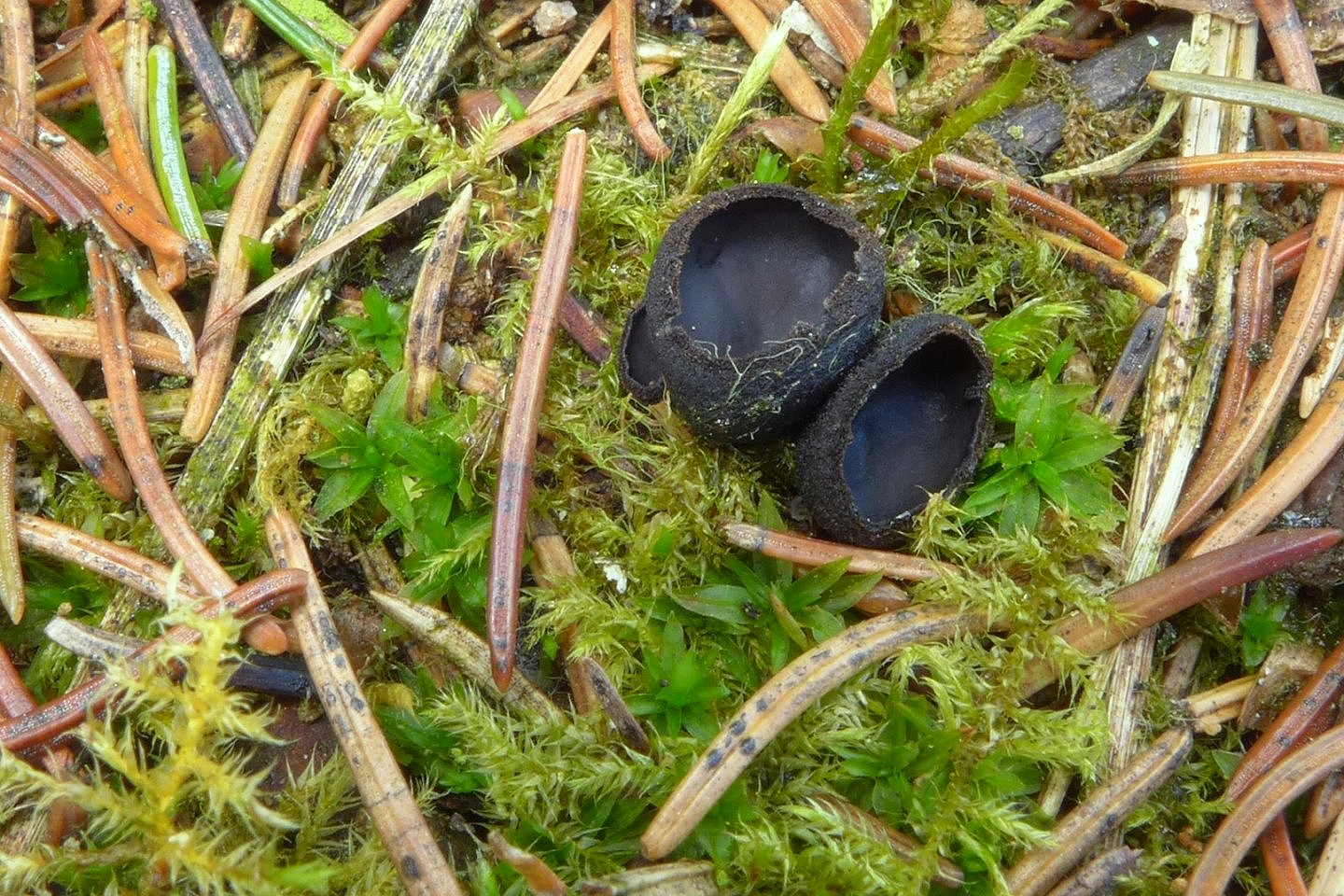 Na kraji lesní cesty ve smrčině růst několika plodnic