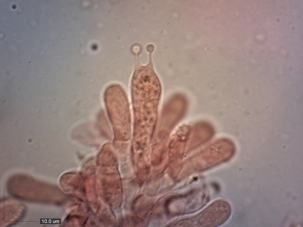 Výtrusy 8,3–10,8 x 6,5–7,9 (průměr 9,3 x 7,0) µm (Qav = 1,3), heterodiametrické. Mikroskopie pro měření výtrusů kongo červeň NH3.