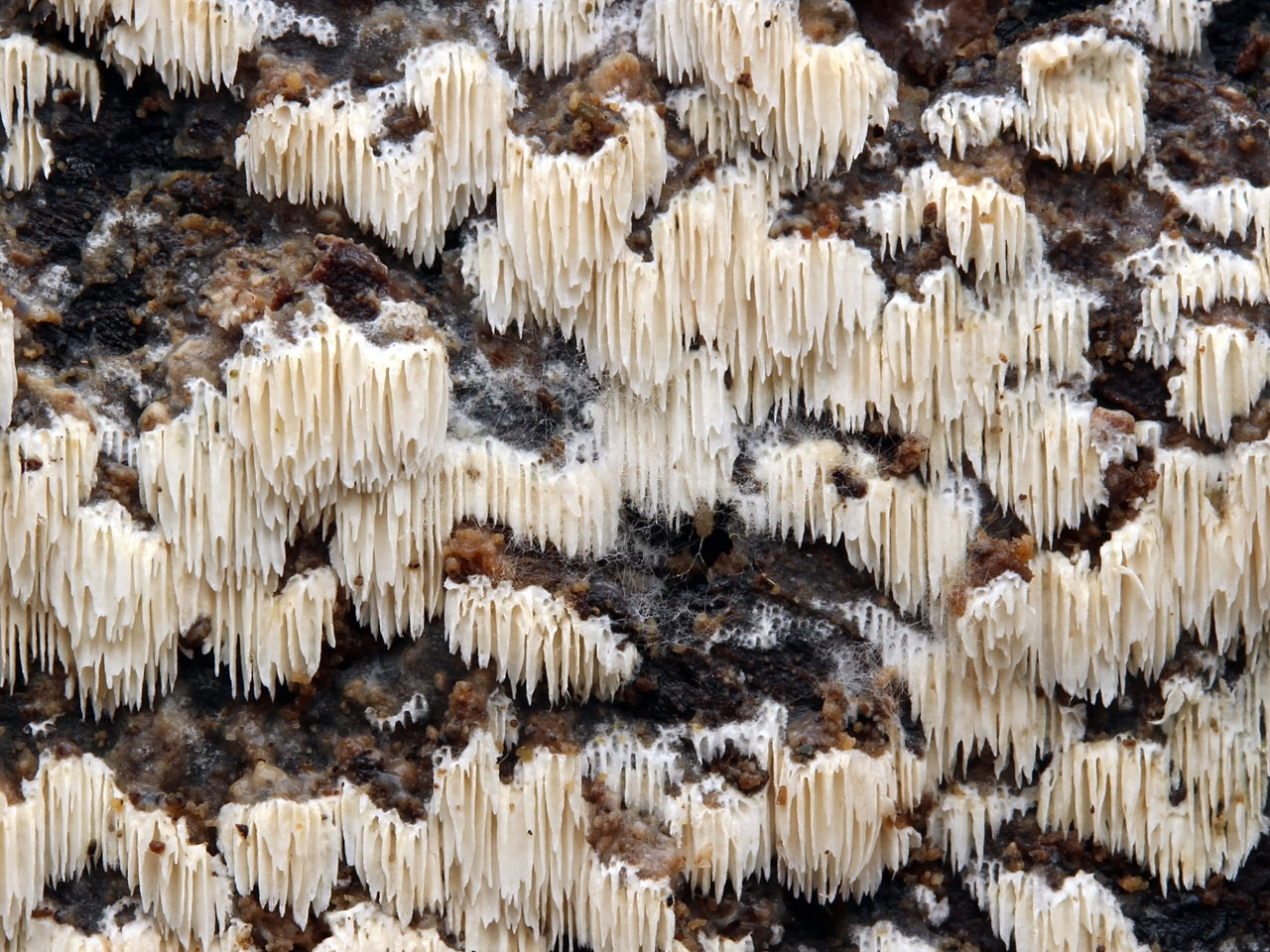 Ostropórku rozlitou (Oxyporus obducens) z této lokality určoval v roce 2008 Jirka Kout. Rozlité plodnice vyrůstaly na tlejícím kmeni (pravděpodobně) topolu, který o několik metrů posunula červnová povodeň. V důsledku mírné zimy jsou plodnice již zažloutlé, zato však vidíme větší detail než na fotografiích z předchozího nálezu. Pokud plodnice vytvářela souvislý povlak, bylo velmi snadné oddělit ji od substrátu.