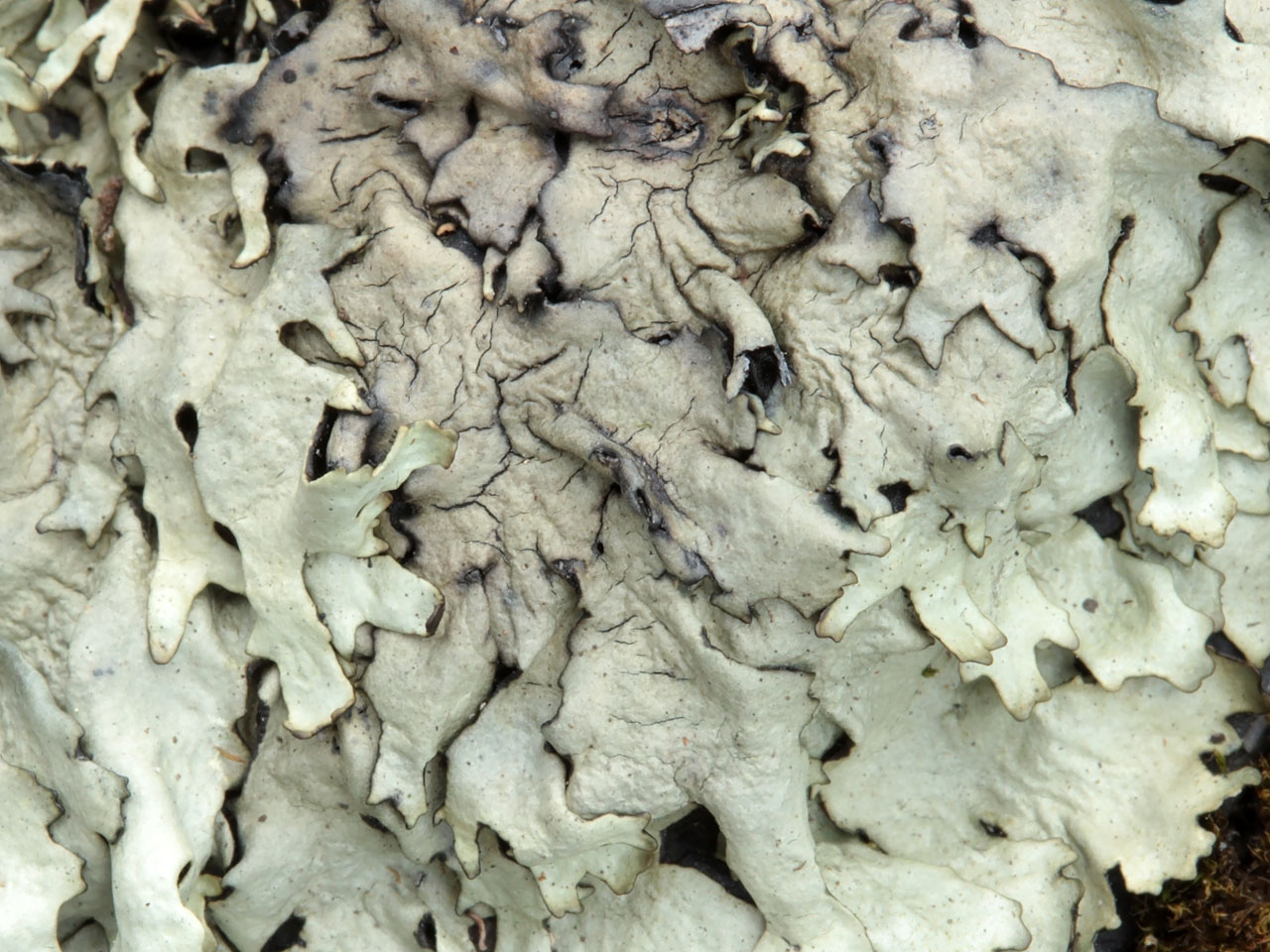 Stélka byla suchá a křehká, částečně přisedlá k substrátu, někdy volná, nakadeřená. Krajní laloky až 20 mm dlouhé, nepravidelně větvené, směrem k okraji mírně rozšířené. Svrchní strana šedozelená, bez sorálů, bez izidií, spodní strana téměř černá s četnými rhizinami, které vyrůstaly od okraje stélky. Dřeň se s KOH zbarvuje červenohnědě.
