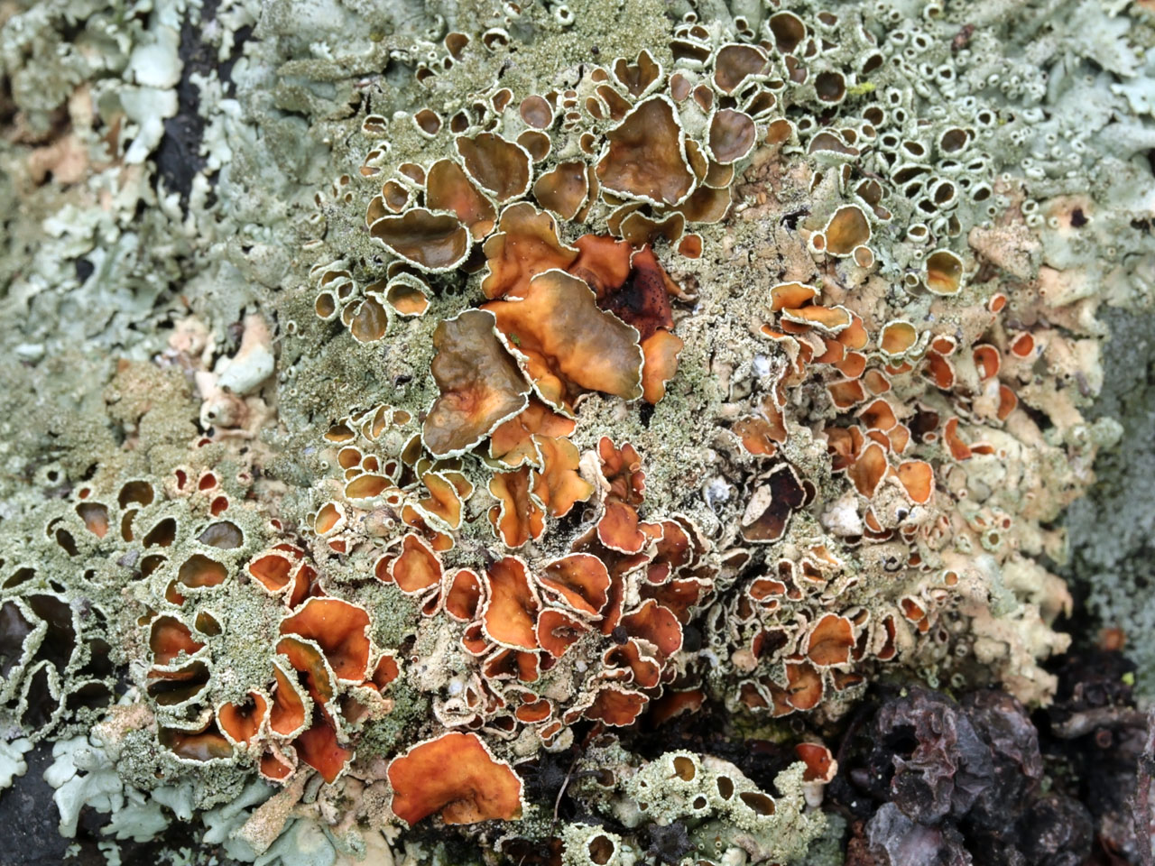Poznámka (24.05.2014): Při pozorování za velmi vlhkého počasí se oranžové barevné odstíny na apothéciích objevují velmi často, tato barevná změna tedy může souviset také s vlhkostí.
