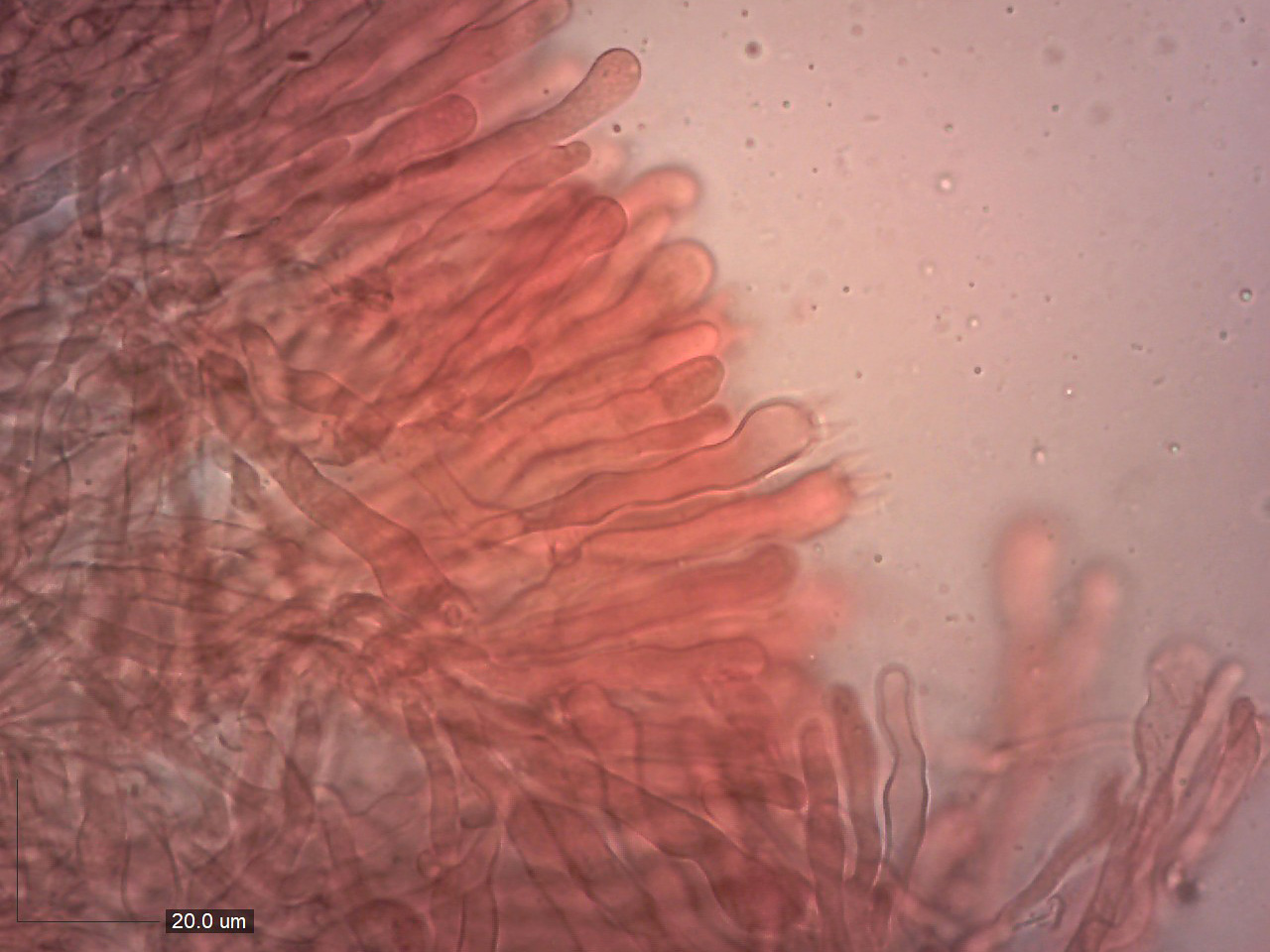 Bazidie 4výtrusé. Hymeniální cystidy nepozorovány.