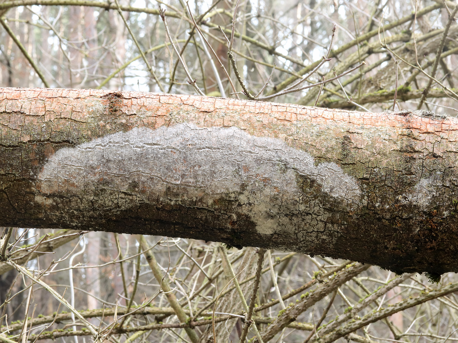 Plodnice na kůře jasanů nejčastěji vytvářejí jen volnou síťku, k jejímu spojení v hladké hymenium dochází později, není ovšem podmínkou.