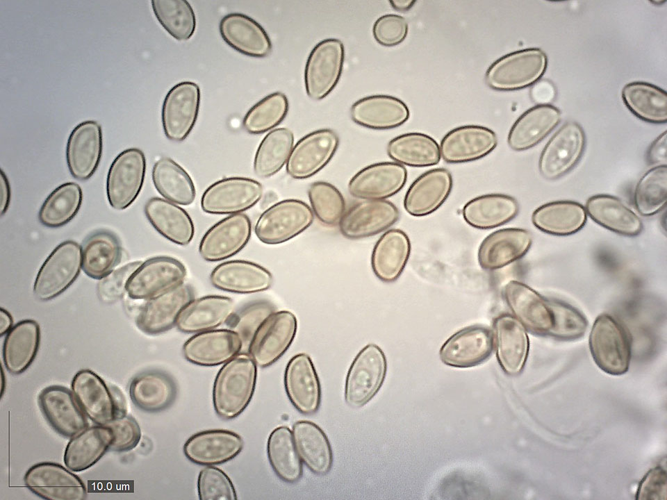 Výtrusy 7,2–8,8 x 4,1–4,9 (průměr 7,9 x 4,5) µm, Q = 1,77. Mikroskopováno v KOH 10%.