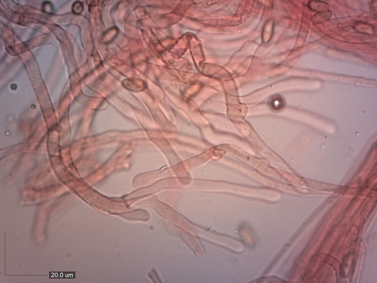 Zralé výtrusy 10,0–12,8 x 5,0–6,0 (průměr 10,8 x 5,4) µm (Qav = 2,0). Mikroskopie pro měření výtrusů H2O.