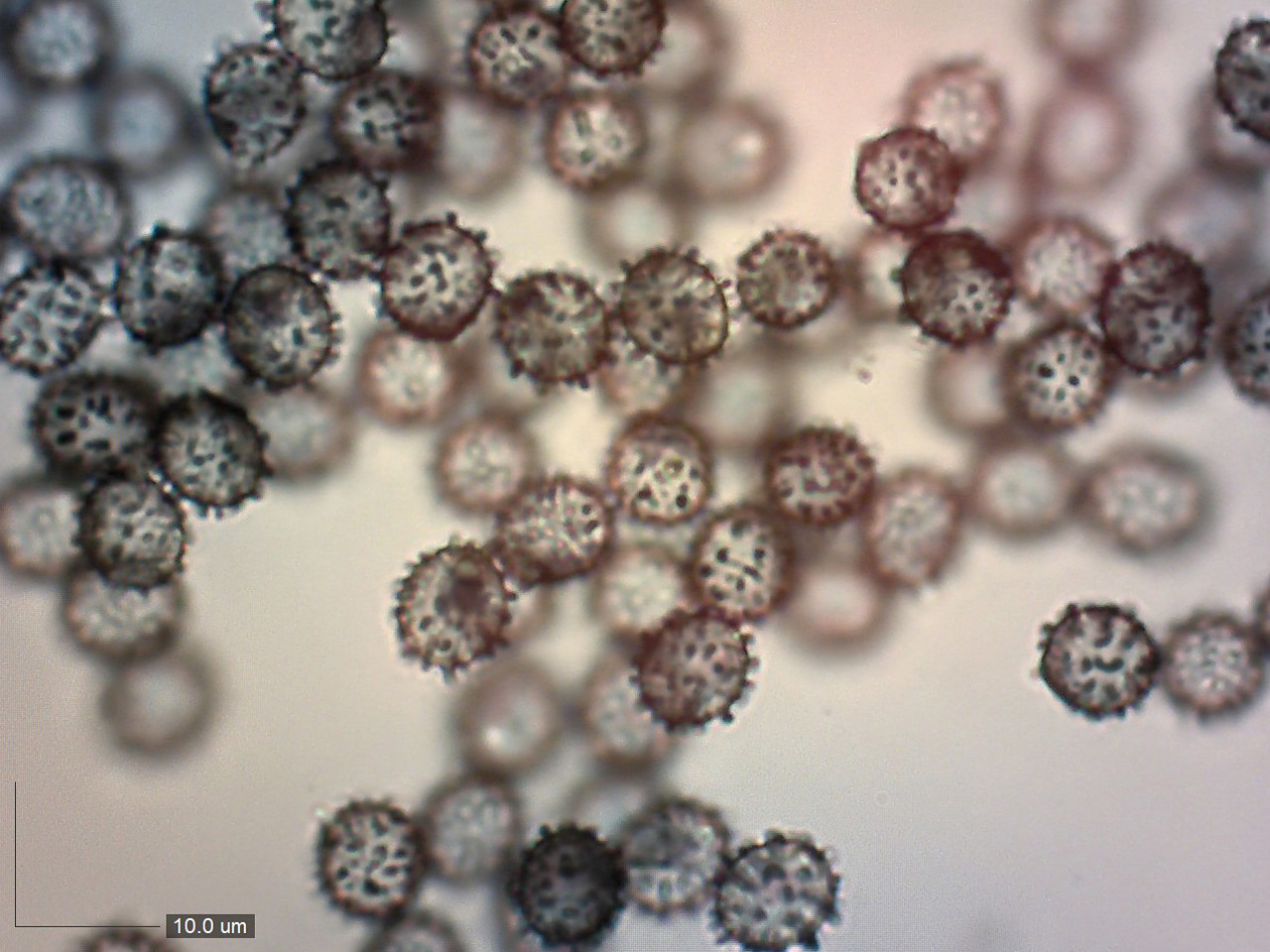 Zralé výtrusy 7,3–8,7 x 5,9–7,3 (průměr 8,1 x 6,8) µm (Qav = 1,2). Mikroskopie pro měření výtrusů Melzerovo činidlo.