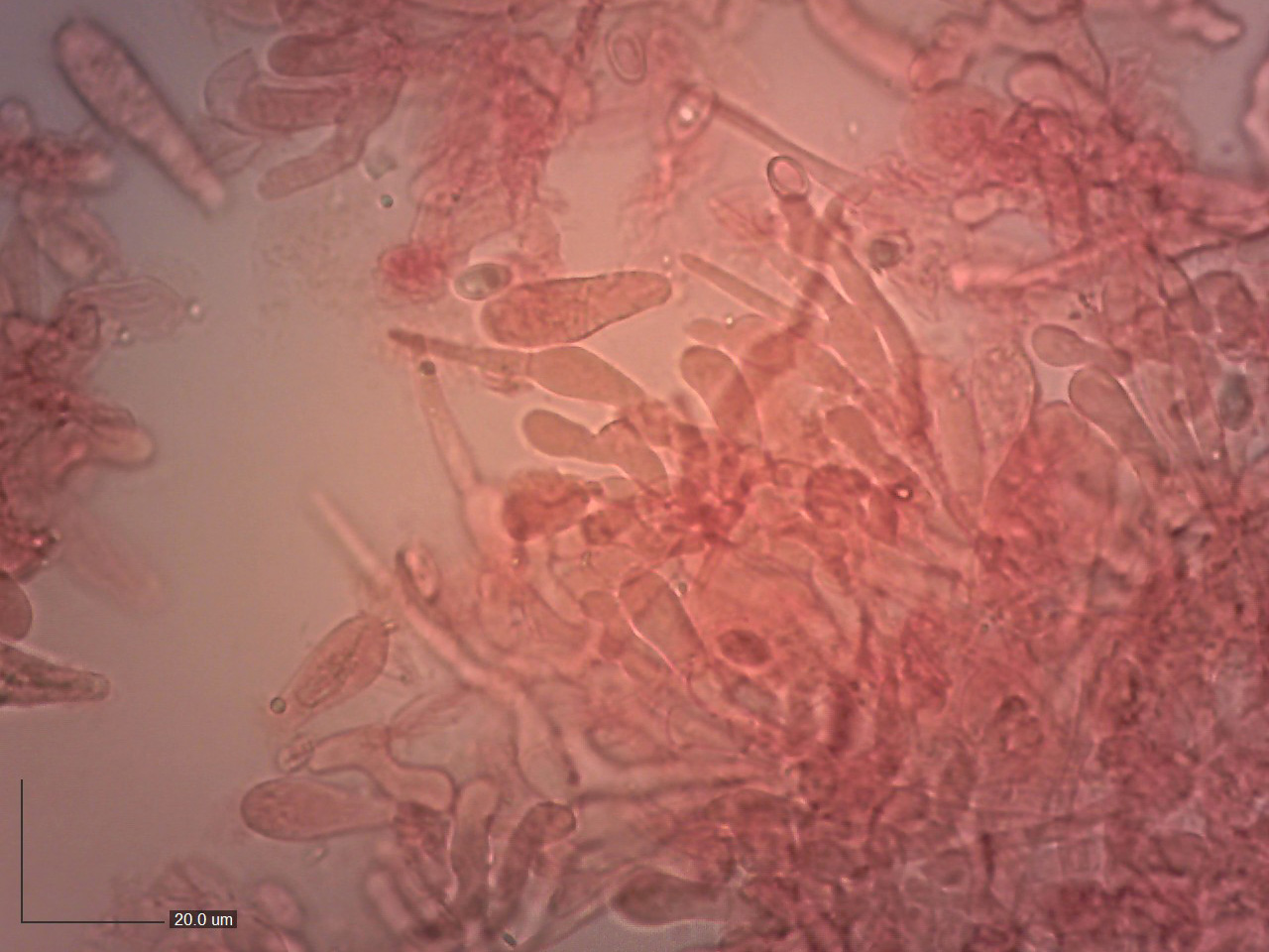 Bazidie 4výtrusé. Cheilocystidy s přehrádkou, obvykle bez vyloučených krystalů na vrcholu. Pleurocystidy chybí.